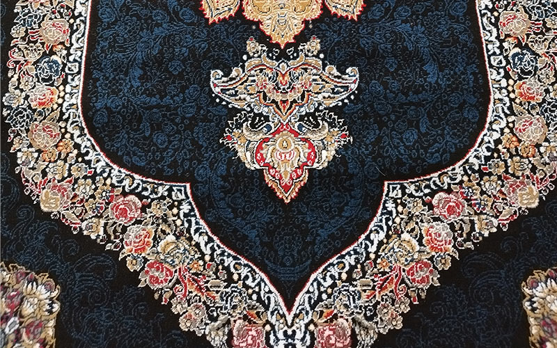 مشخصات فرش ماشینی 440 شانه طرح کارینا زمینه سرمه ای