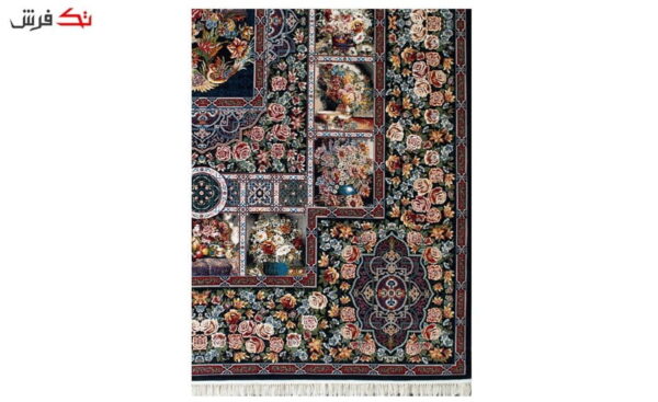 مشخصات فرش ماشینی طرح باغ ارم زمینه سرمه ای