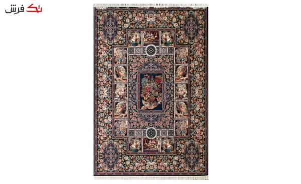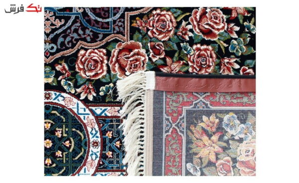 نقد و بررسی اجمالی فرش ماشینی طرح باغ ارم زمینه سرمه ای
