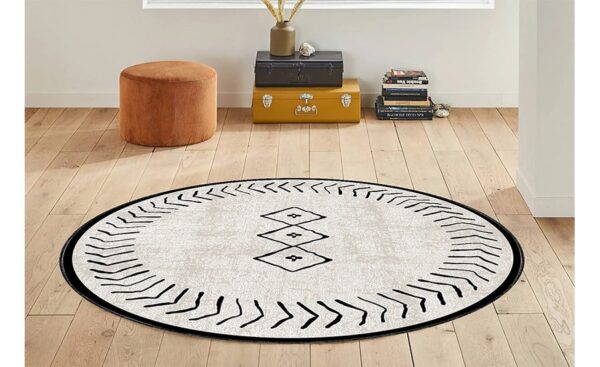 نقد و بررسی اجمالی فرش ماشینی دایره کلکسیون مراکشی کد 300103 زمینه سفید