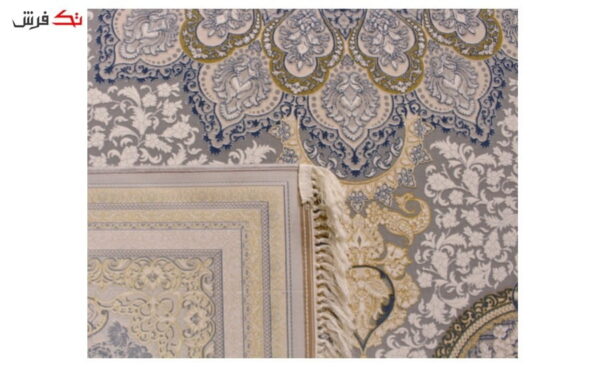 نقد و بررسی اجمالی فرش ستاره آسمان کویر طرح 2001 زمینه نقره ای گل برجسته