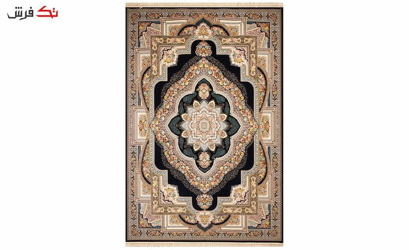 نقد و بررسی اجمالی فرش ستاره آسمان کویر طرح باغ معلق زمینه سرمه ای