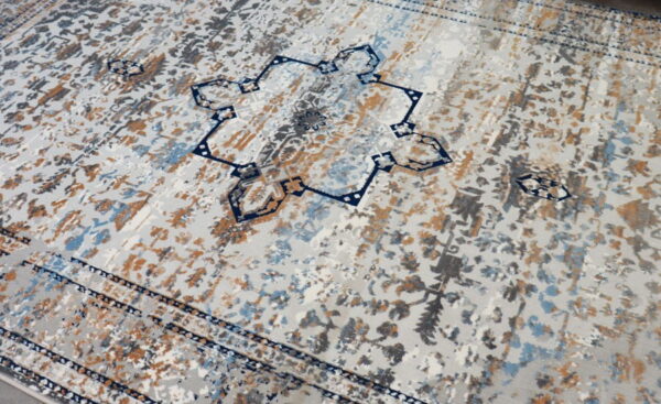 مشخصات فرش فانتزی کلکسیون کهنه نما کد 412 زمینه طوسی گل برجسته