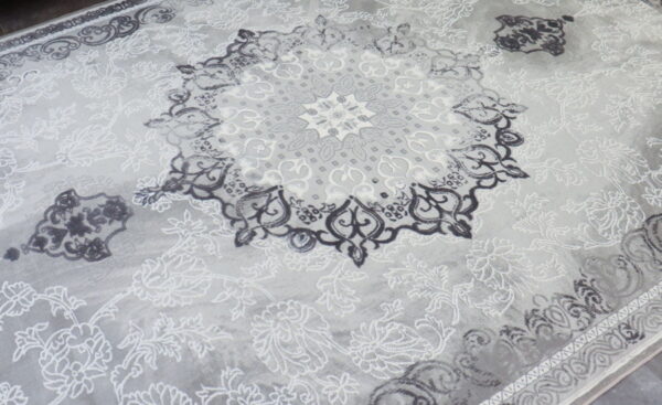 فرش فانتزی کلکسیون کهنه نما کد 437 زمینه طوسی گل برجسته