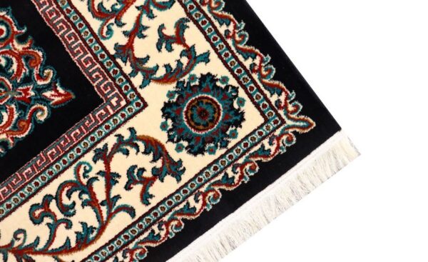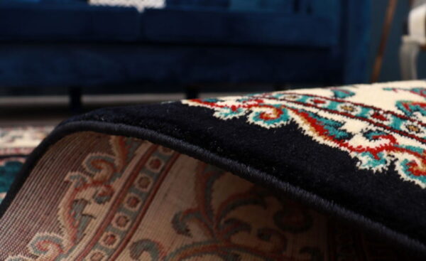 نقد و بررسی اجمالی فرش ماشینی سبلان کلکسیون گبه کد 81 زمینه سرمه ای